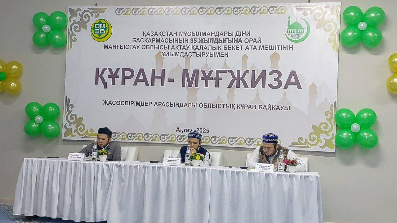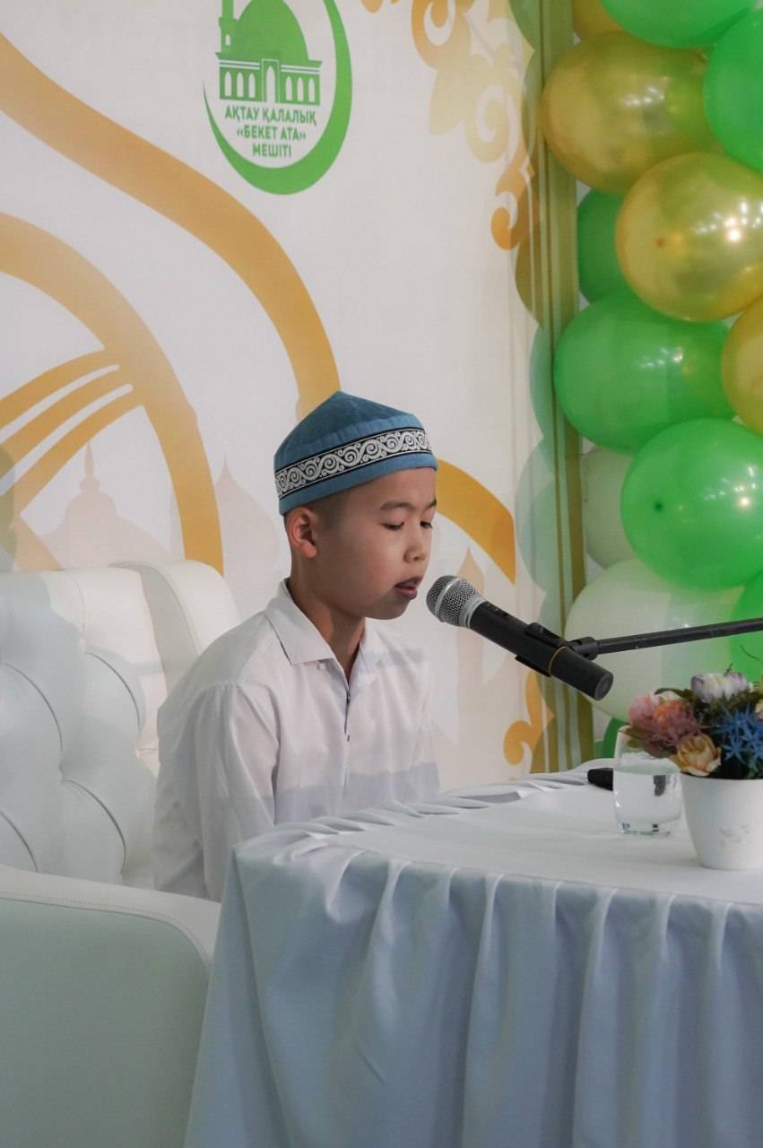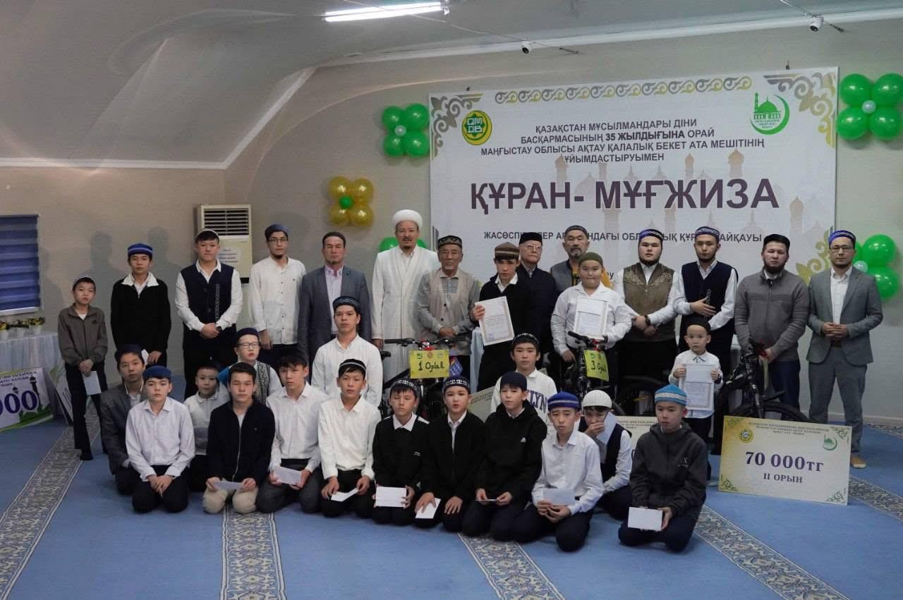 Қазақстан мұсылмандары діни басқармасының 35 жылдығына орай Ақтау қалалық “Бекет ата” мешітінің ұйымдастыруымен 15 жасқа дейінгі ер балалар арасында қасиетті Құранның 29-30 парасынан жатқа оқудан облыстық Құран жарысы өтті.