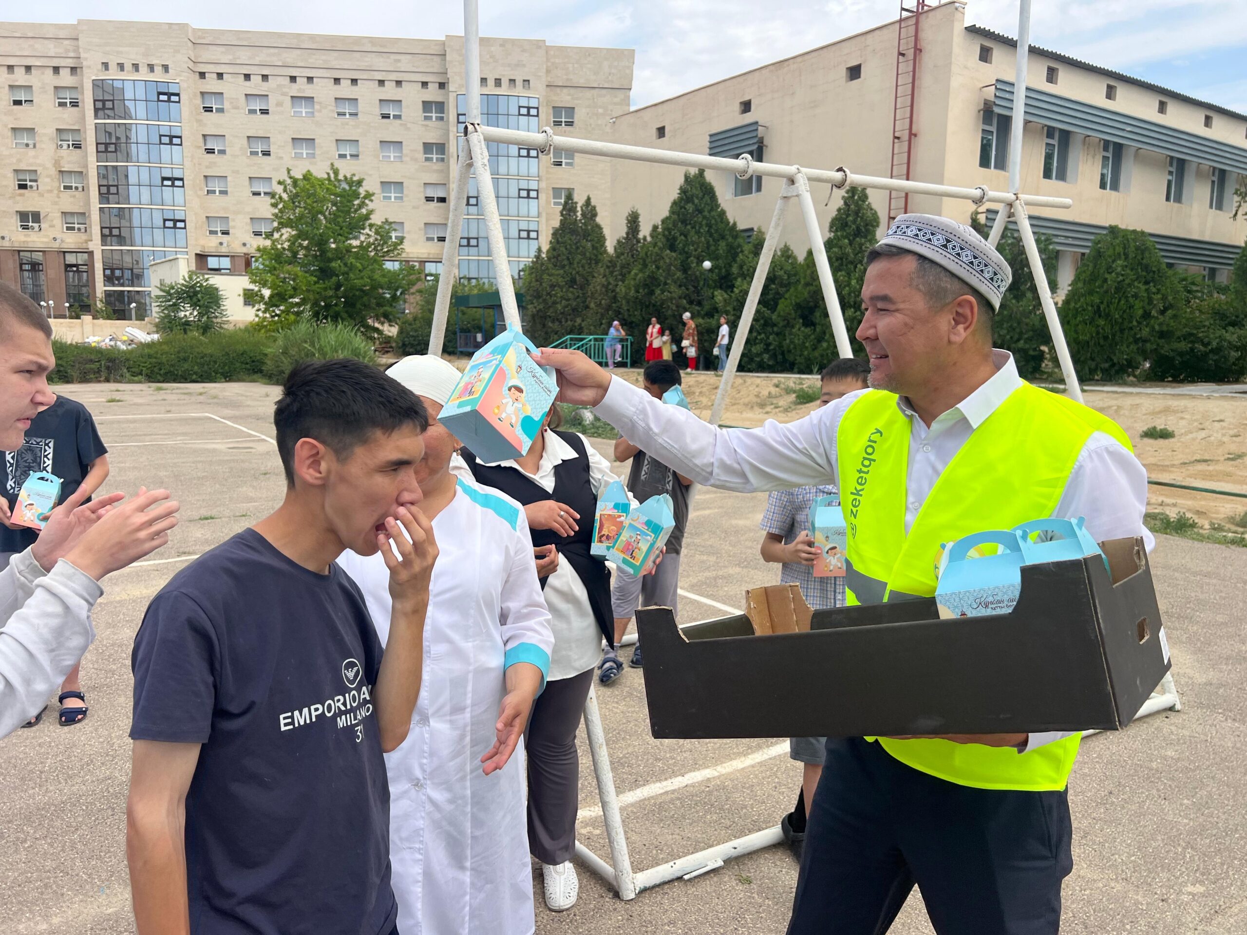 Қасиетті Құрбан айт қарсаңында Маңғыстау облысының бас имамы Әнуар Ізімбайұлы мен Маңғыстау қажылар қауымдастығының ақсақалдарымен бірлесе отыра, Маңғыстау облыстық балалар ауруханасында емделіп жатқан бүлдіршіндерге “Құрбан айт тәттілерін” үлестірді.