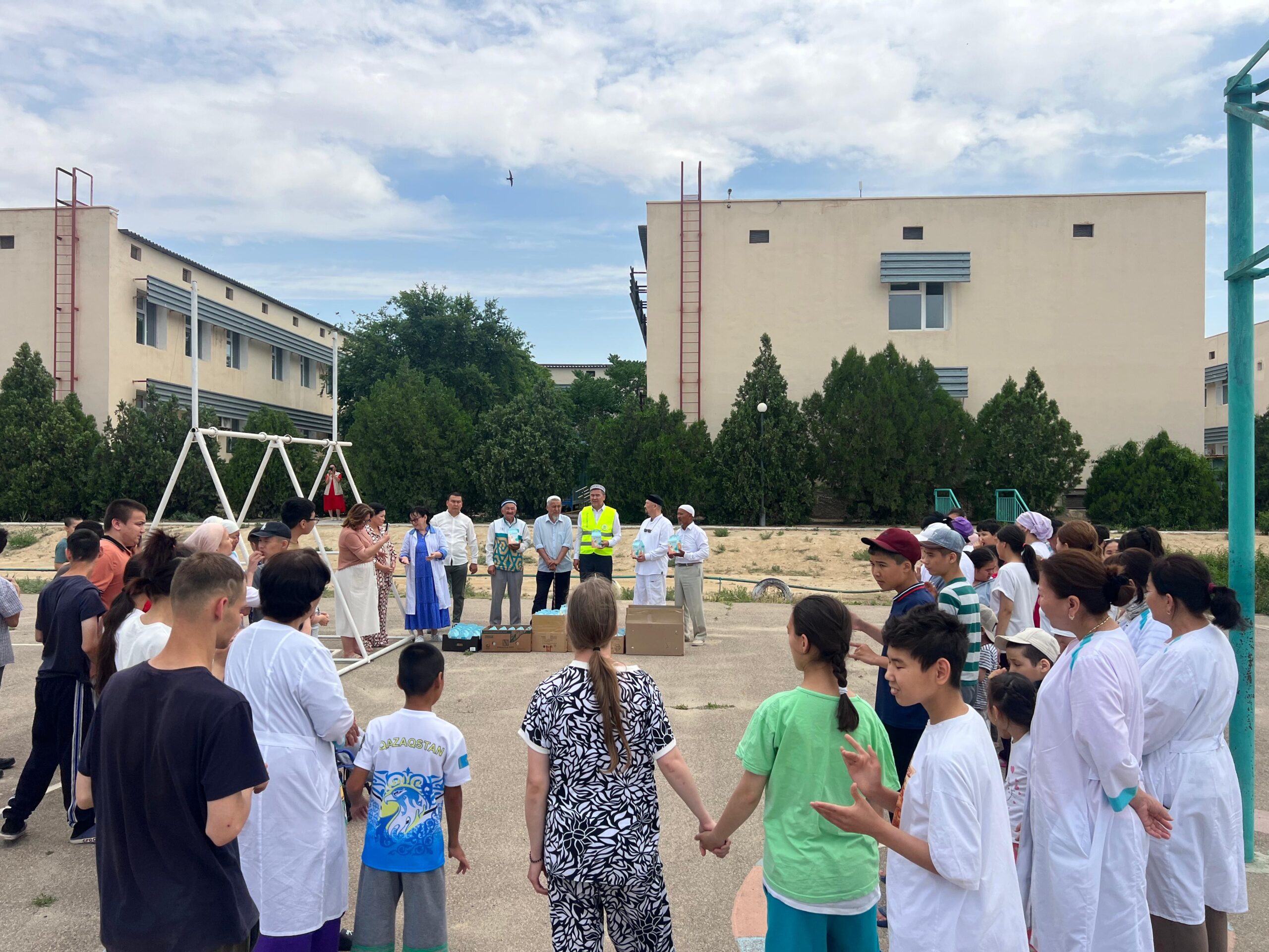 Сонымен қатар,1-ші шағын ықшам ауданында орналасқан №3 ші әлеуметтік қызметтер көрсету орталығындағы тәрбиеленіп жатқан ерекше күтімді қажет ететін бүлдіршіндерге ұлы мерекеге орай  тәтті-дәмділер тарту етіліп, әртүрлі тәттілер салынған сыйлық дорбаларын үлестірді.Облыс бас имамы Әнуар Ізімбайұлы балаларды Құрбан айт мерекесімен құттықтап,дерттеріне шипа, дендеріне саулық тіледі.