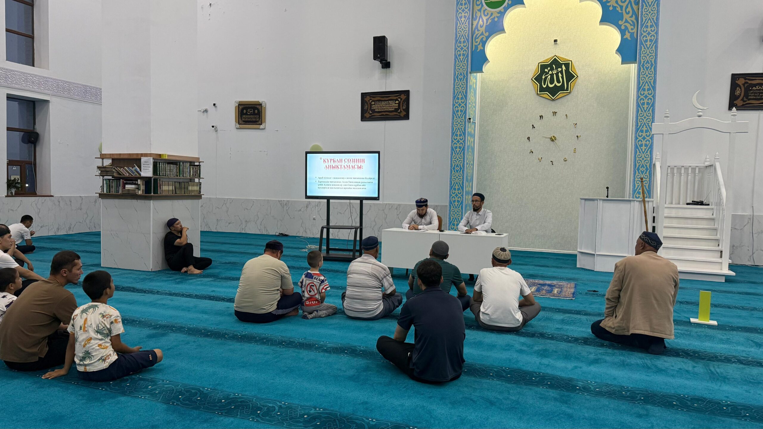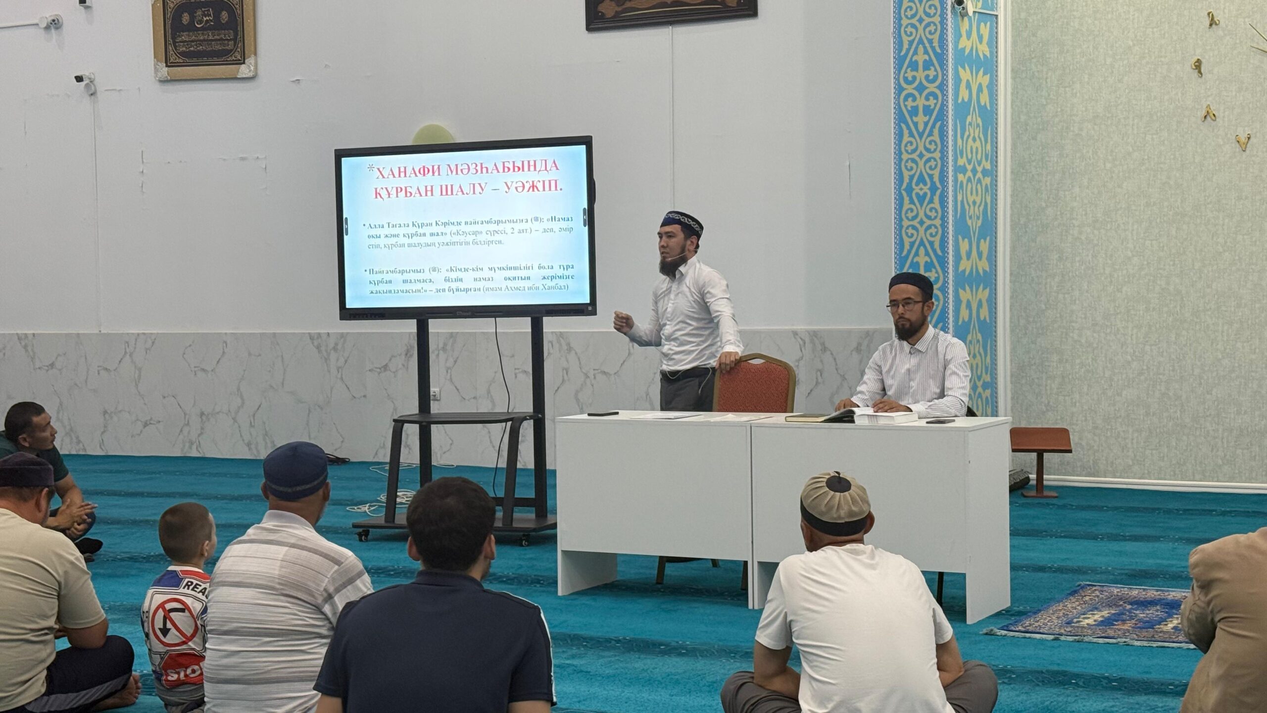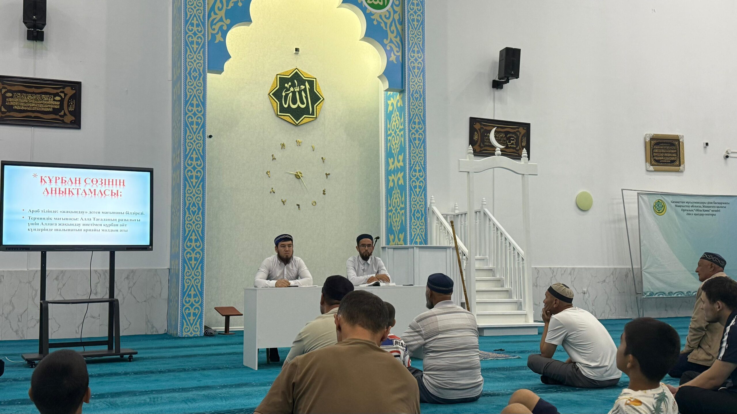 Мұсылмандардың ұлық мейрамы болған Құрбан айт мерекесі жақындауына орай Жаңаөзен қаласы, Орталық “Әбіш Қожа” мешітінде мешіт жамағаттарына “Құрбан айтқа қатысты үкімдер” және “Құрбандық шалудың тарихы және үкімдері” атты семинар өтті.