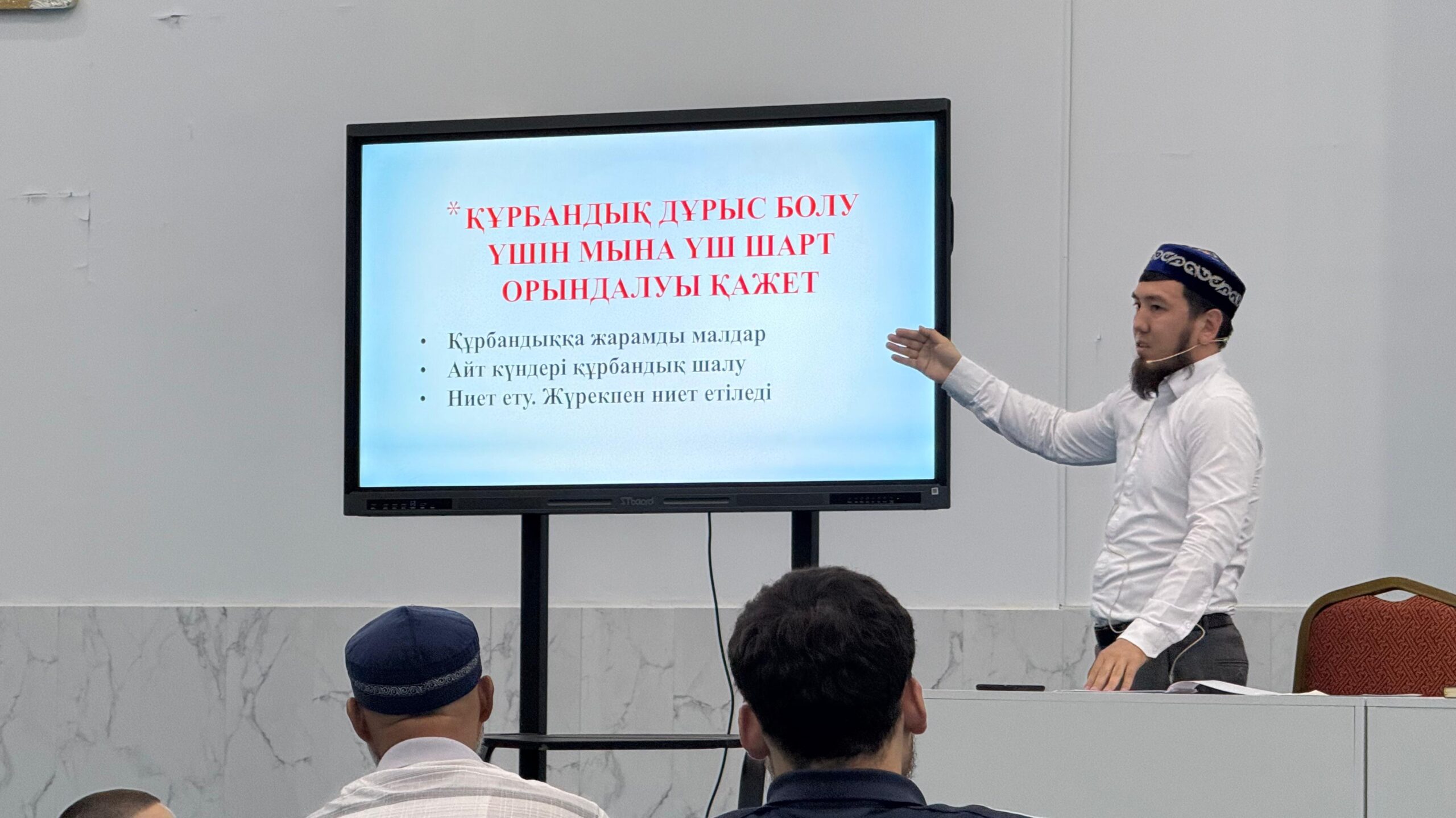 Сондай-ақ “Әбіш Қожа” мешітінің наиб имамы Өтеген Берік “Құрбан шалуға қатысты үкімдер”, “Құрбандыққа қандай малдар жарамды”, “Құрбан шалудың уақыты” жайлы түсіндіріп, қосымша жамағаттан қойылған сұрақтарға жауап берді.