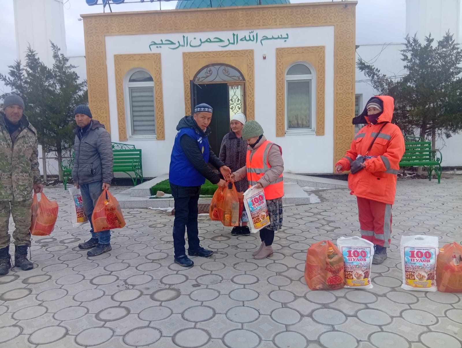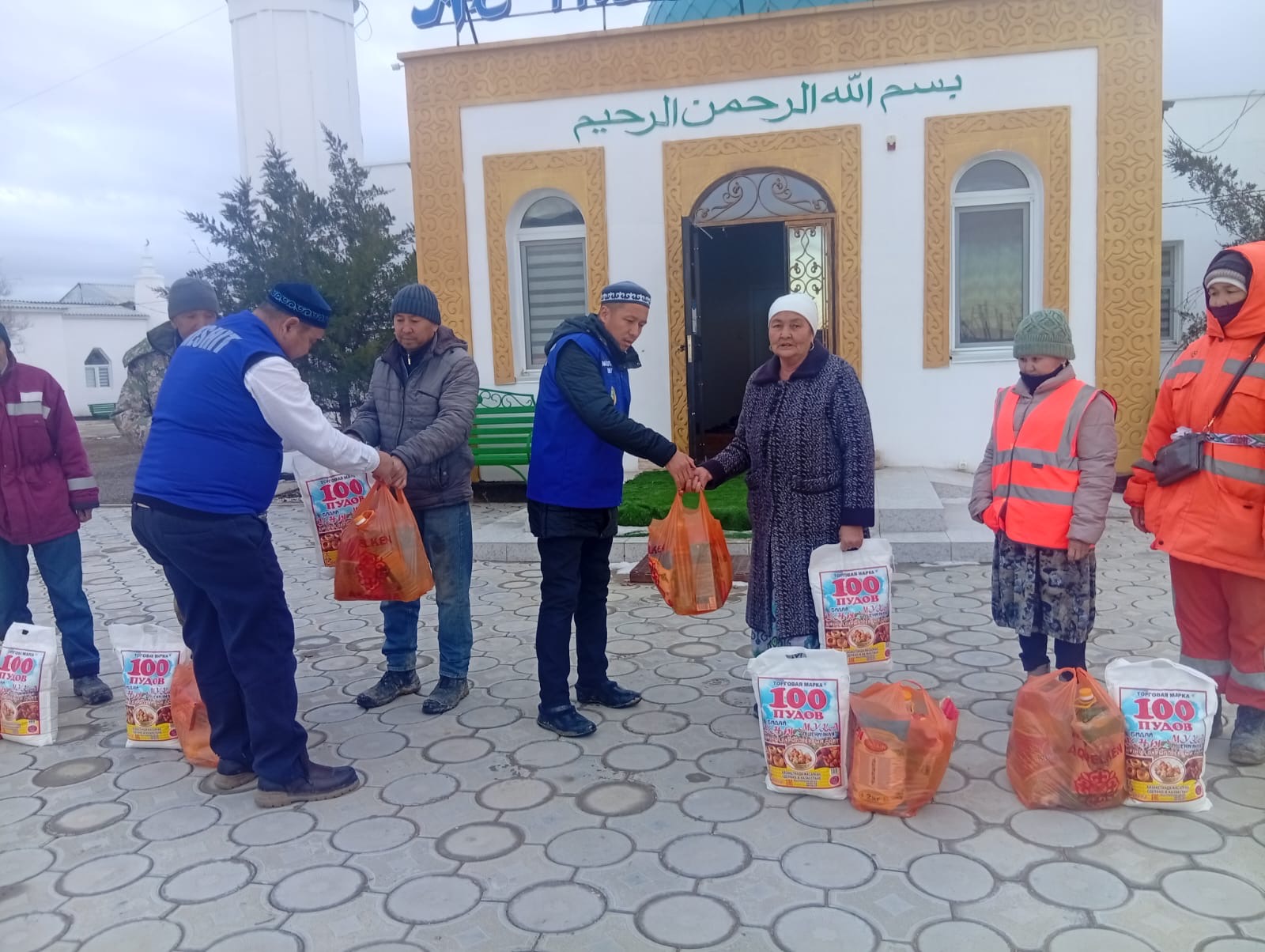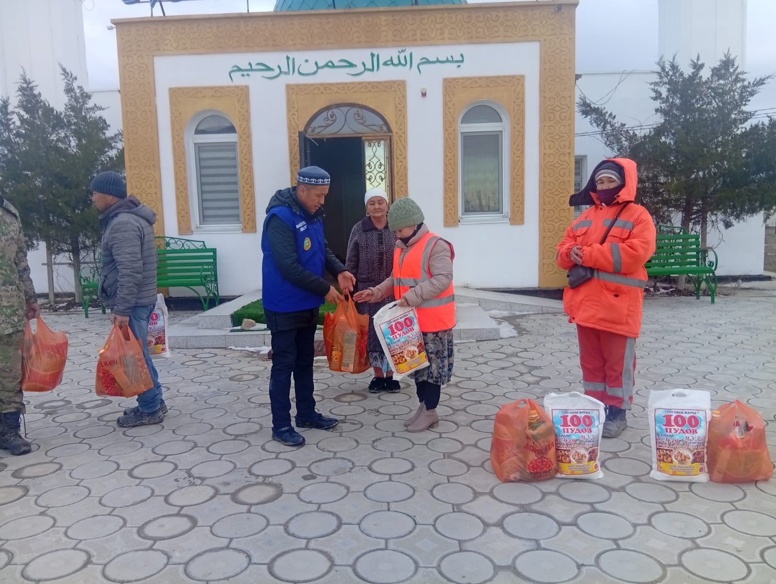 Шара барысында қоғам игілігі жолында еңбек етіп жүрген көше тазалықшыларына қолдау көрсетіліп, 10 отбасыға азық-түлік себеттері таратылды.