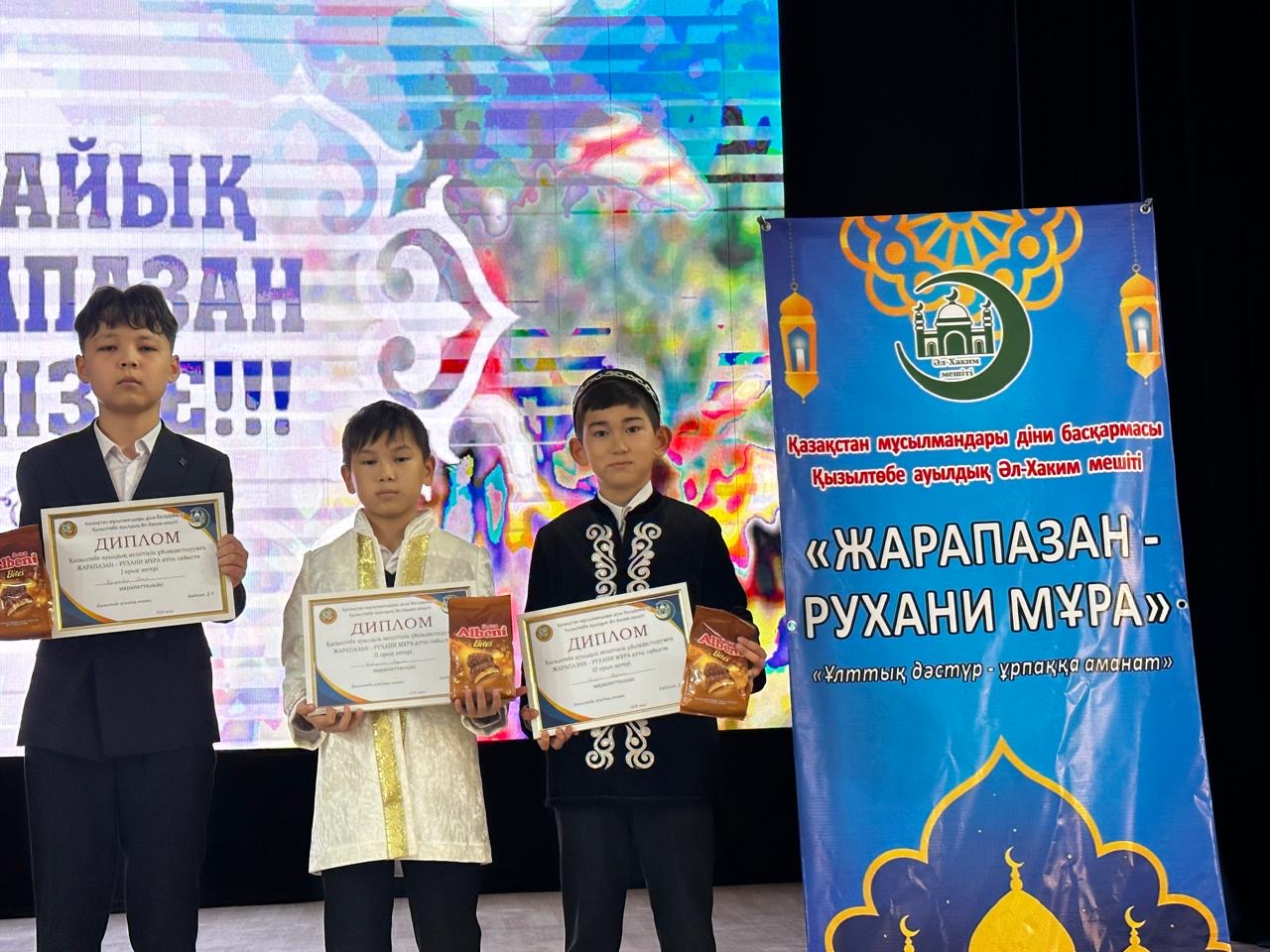 Қызылтөбе ауылдық мәдениет үйінде «Әль -Хаким» мешітінің ұйымдастыруымен қасиетті Рамазан айының құрметіне орай балалар арасында Жарапазан сайысы ұйымдастырылды.