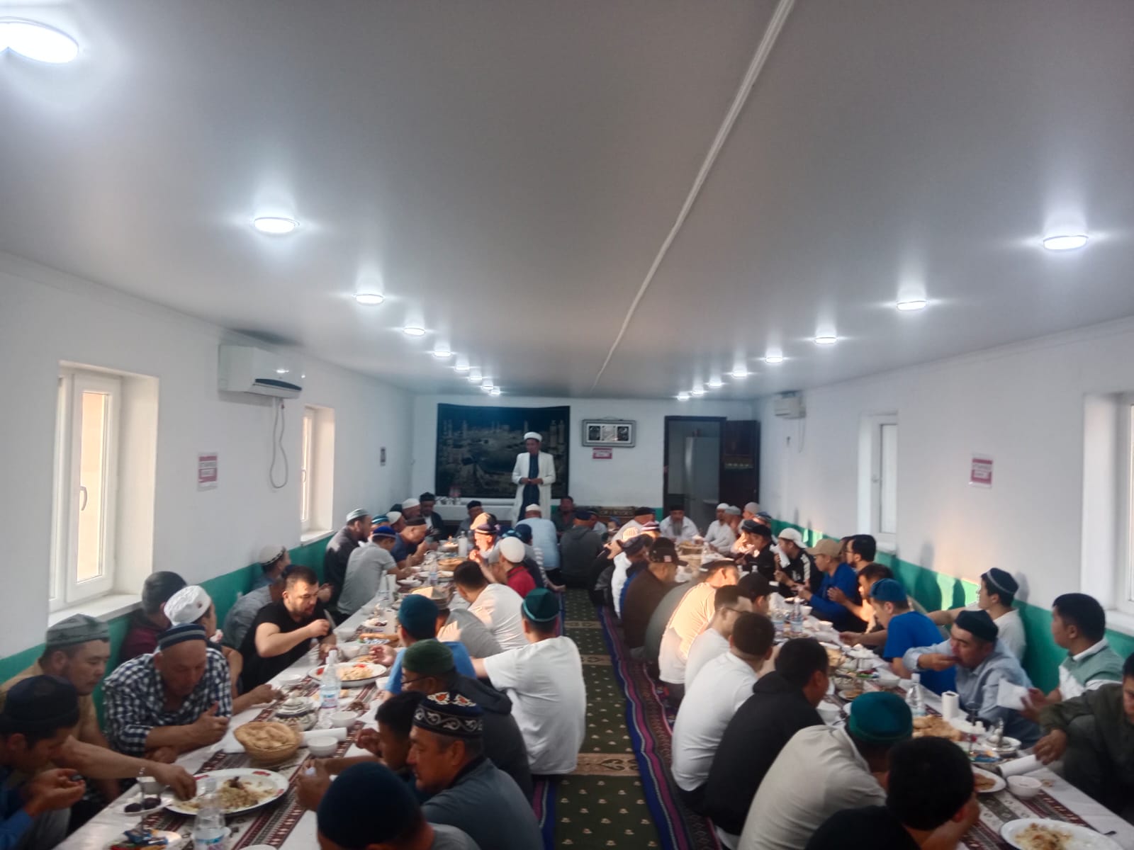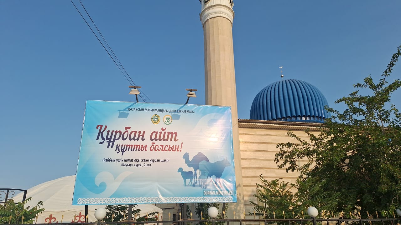 Күллі мұсылман қауымы асыға күтетін ұлық мерекенің құрметіне жайылған ақ дастархан басында мешіттің бас имамы Қайрат Қошкелдіұлы барша жиналған жамағатқа Құрбан айттың шығу тарихы мен мән-маңызы,Құрбан шалудың сауабы жайлы насихат айтты.Жиын соңында ата-бабалар рухына Құран бағышталып,ел амандығы үшін дұға жасалды.