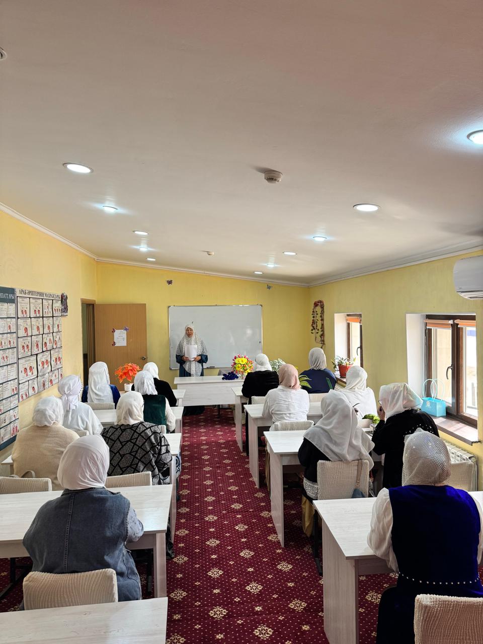 Шараға ұстаз Сейтимова Жансая жетекшілік жасап, жиналған жамағатқа пайғамбарымыз Мұхаммедтің ﷺ өмір жолынан өнегелі насихаттар айтты.