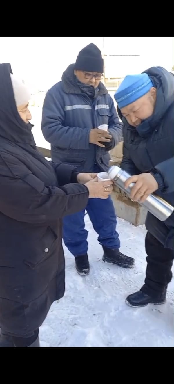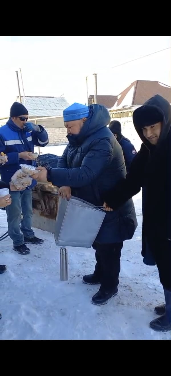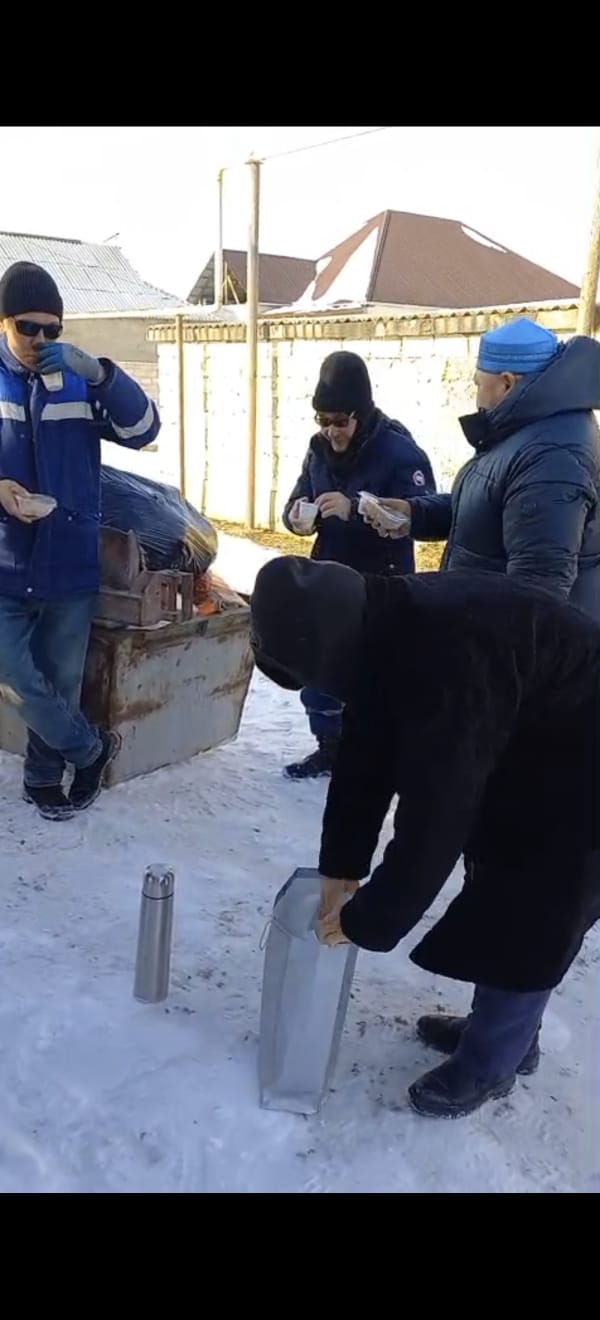 Осындай қыстың ызғарлы аязды суық күніне қарамастан ауылымыздың және қоғамдық орындарды қоқыстан тазартып, адал қызмет жасап жүрген қызметкерлермен кездесіп ризашылығын білдіріді.Сонымен қатар еңбекқор жандарға ыстық қара шай мен ыстық тағам түрлерін таратып берді.