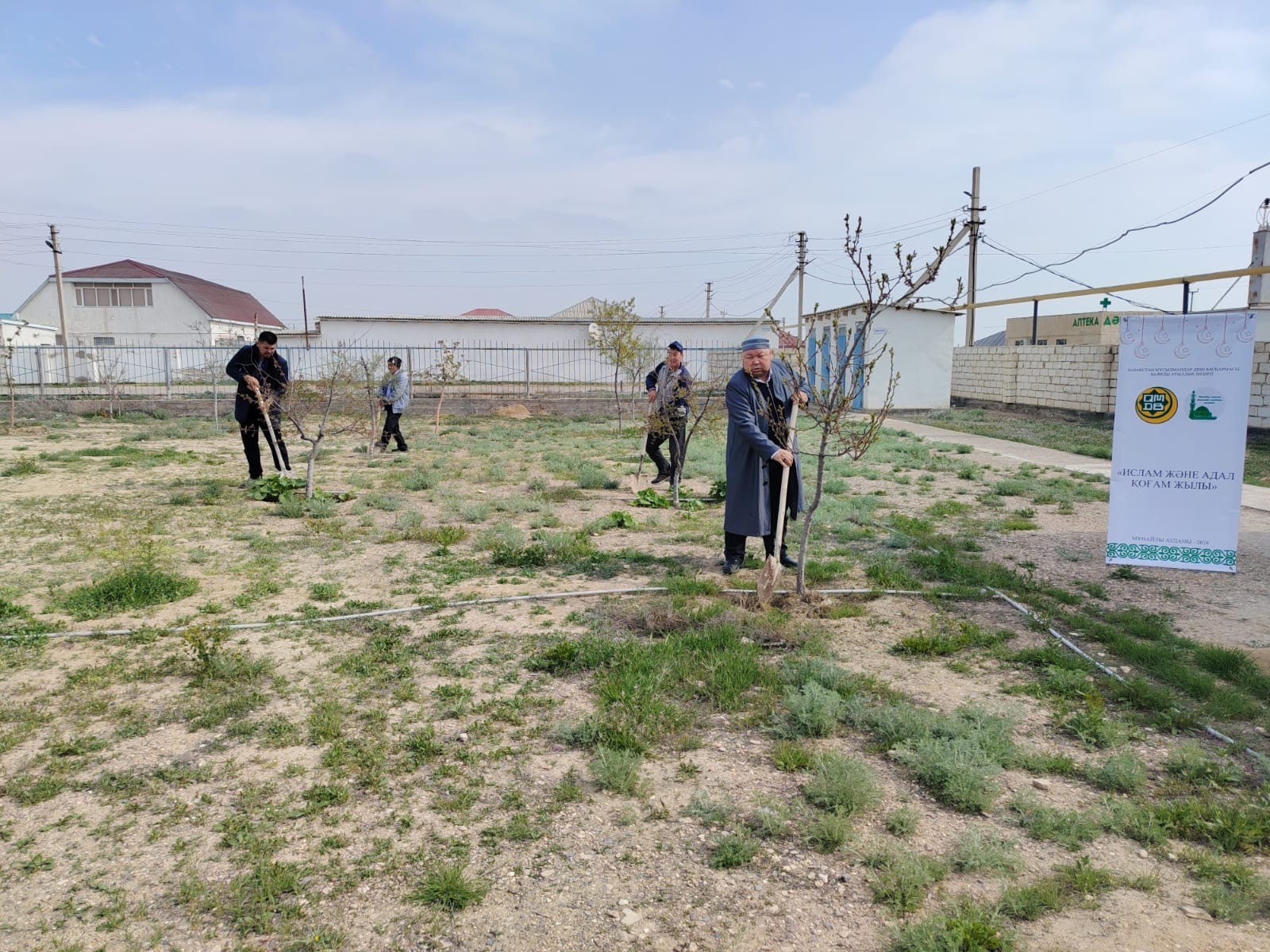 Сонымен қатар, «Бір тал кессең, он тал ек» жобасы аясында мешіттің бау-бақшасына жеміс ағаштарының көшеттері отырғызылып, көгалдандыру жұмыстары жүргізілді. Бұл игі бастама табиғатты қорғау мен қоршаған ортаны көркейтуге бағытталған маңызды қадамдардың бірі болды.