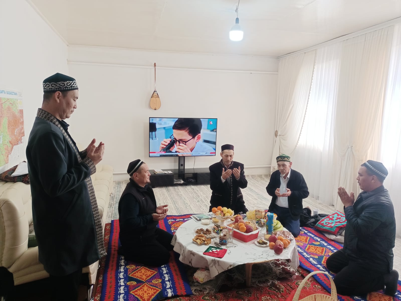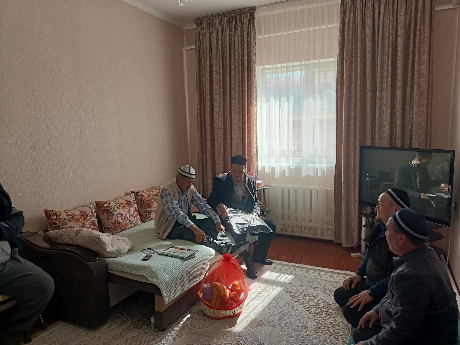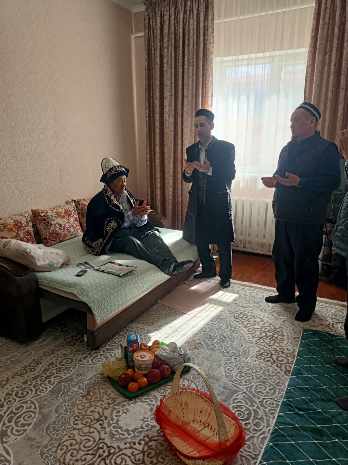 Кездесу барысында мешіт имамы Ұзақбай Түркменбайұлы қарияларға «Рамазан тәттілері» себетін табыстап, қазақы дәстүрге сай иықтарына шапан жапты. Сонымен қатар ақсақалдарға ұзақ ғұмыр, зор денсаулық тілеп, ізгі лебізін білдірді.