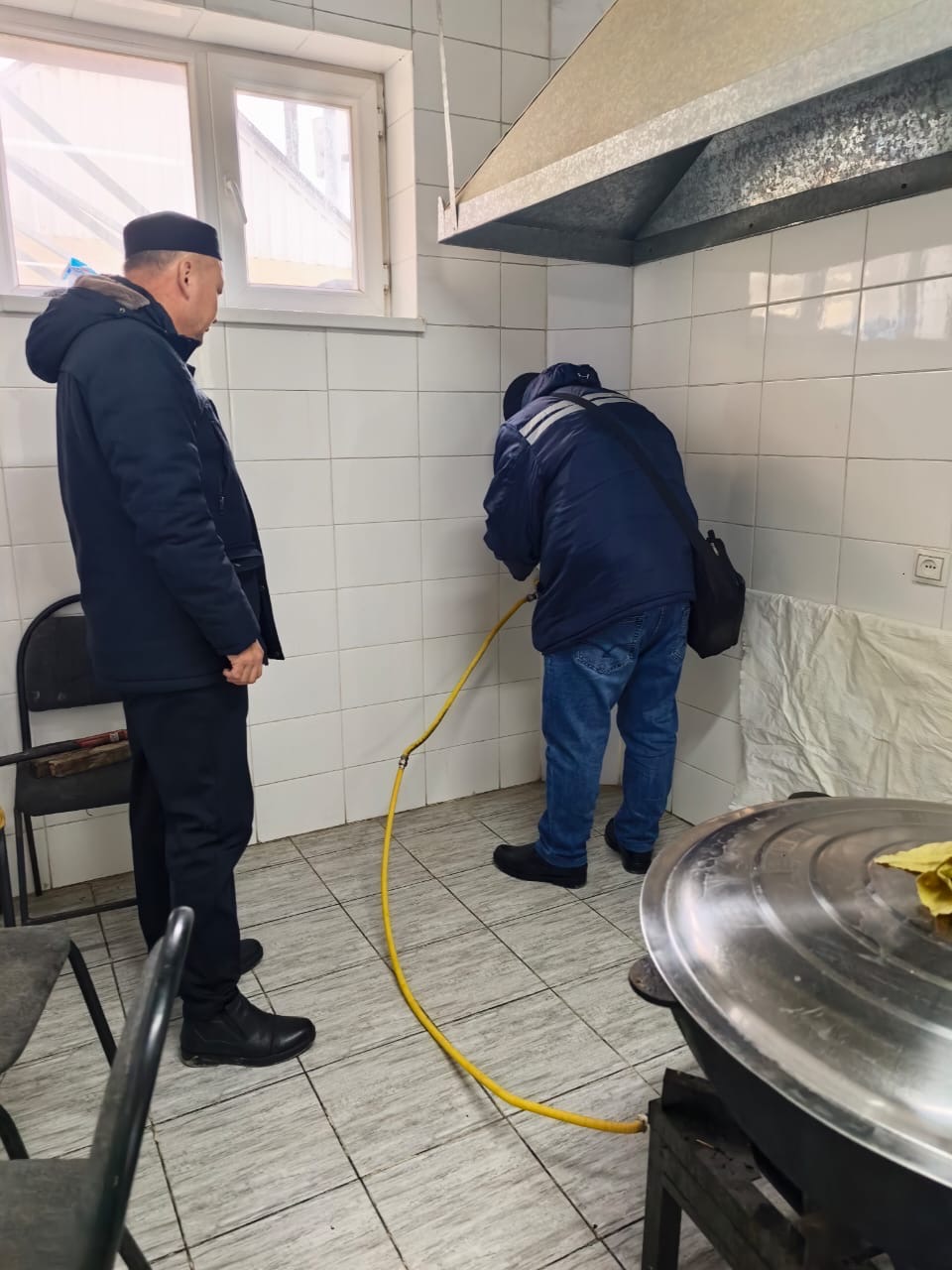 Тексеру барысында өрт қауіпсіздігі ережелерінің сақталуы, газ құрылғыларының жарамдылығы және жалпы қауіпсіздік талаптарының орындалуы назарға алынды.