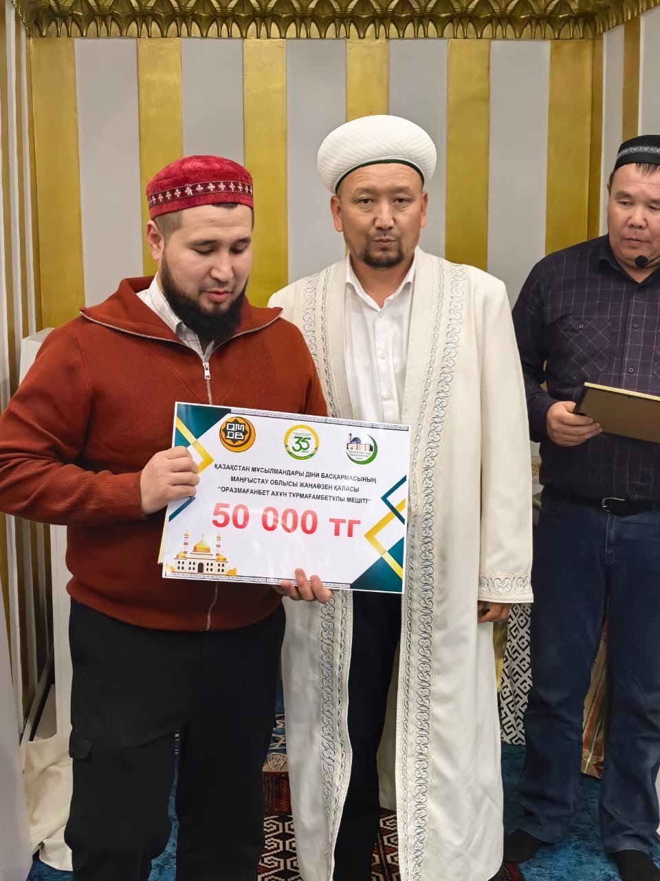 Шара барысында мешітте бір ай бойы Құран хатым жасаған қариларға кіші қажылыққа жолдама табысталды. Бұл – олардың діни жолдағы қажырлы еңбегіне деген зор құрмет пен ризашылықтың белгісі. Сонымен қатар, мешіт ақсақалдарына шапан жабылып, олардың қоғамдағы және діни қызметтегі үлесіне алғыс білдірілді. Кеш барысында жамағат қарилар мен ақсақалдардың тағылымды сөздеріне құлақ асып, рухани азық алды.