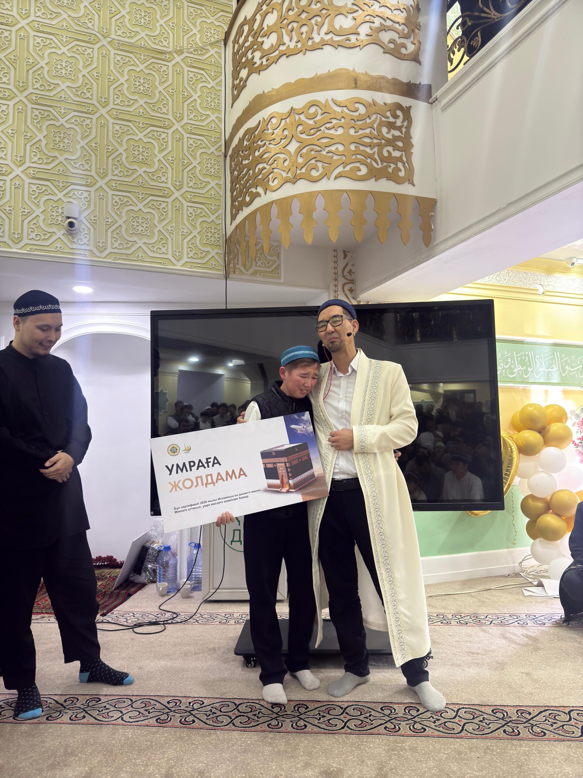 Ислам ілімдері бойынша (Құран, фиқһ, ақида, сира) өткен ғылыми сайыстың нәтижесінде бірінші ұмра жолдамасын Асылбек бауырымыз жеңіп алды. Алайда ол үлкен жомарттық танытып, өз үлесін Көбейсін бауырымызға сыйға тартты.