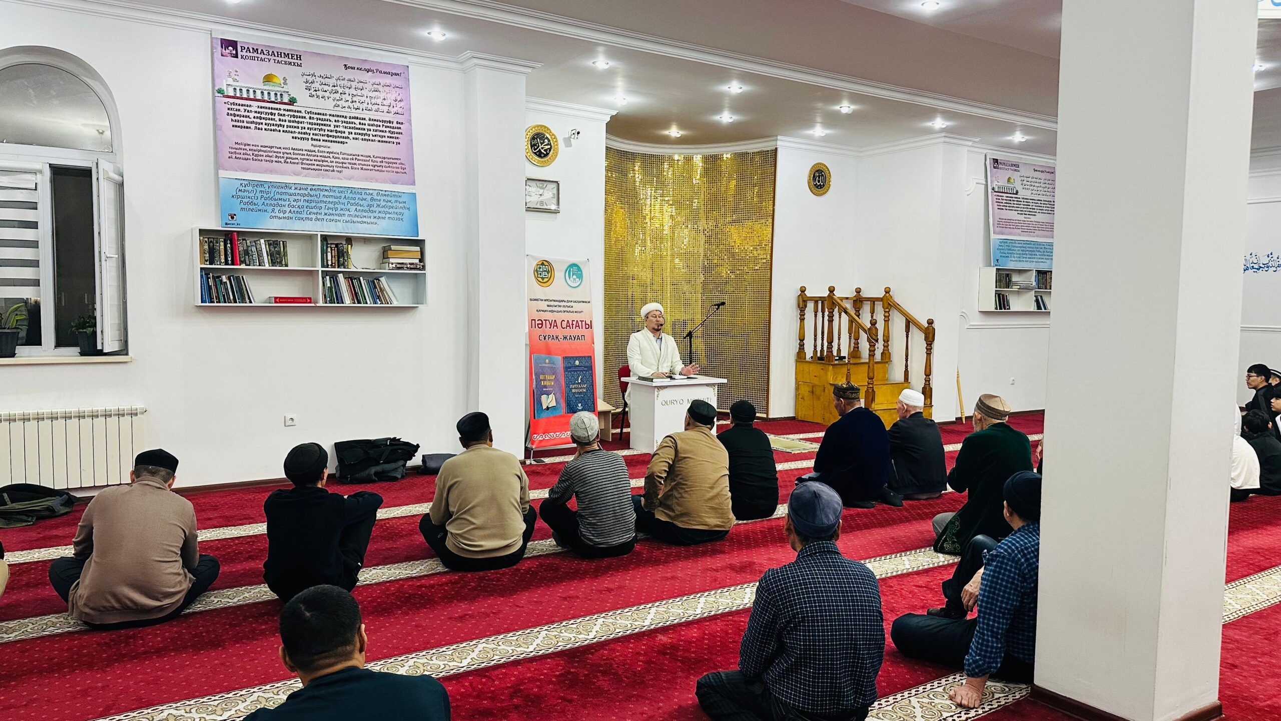 Шара барысында мешіттің бас имамы Серік Есмұрзаев жамағатқа қасиетті Рамазан айына қатысты пәтуалар мен діни үкімдер жайында түсіндірме жасап, оразаның шарттары, тәртібі және сауапты амалдар туралы насихат айтты.