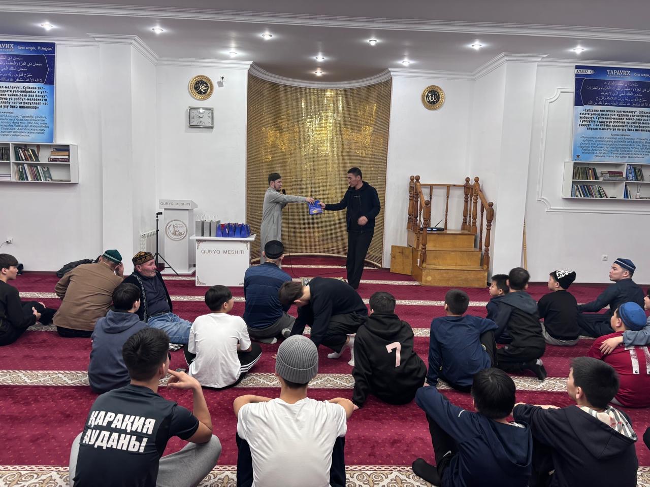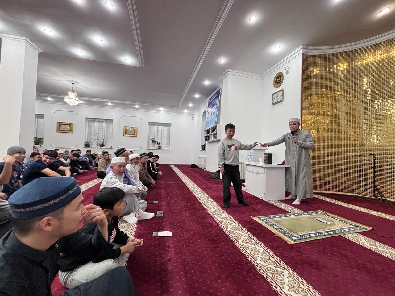 Рухани шара барысында жамағатқа діни тақырыпта сұрақтар қойылып, қатысушылар өз білімдерін сынады. Жамағаттың діни сауатын арттыру, ислам құндылықтарын кеңінен насихаттау мақсатында өткен білім сайысында жеңімпаздарға арнайы сыйлықтар табысталды.