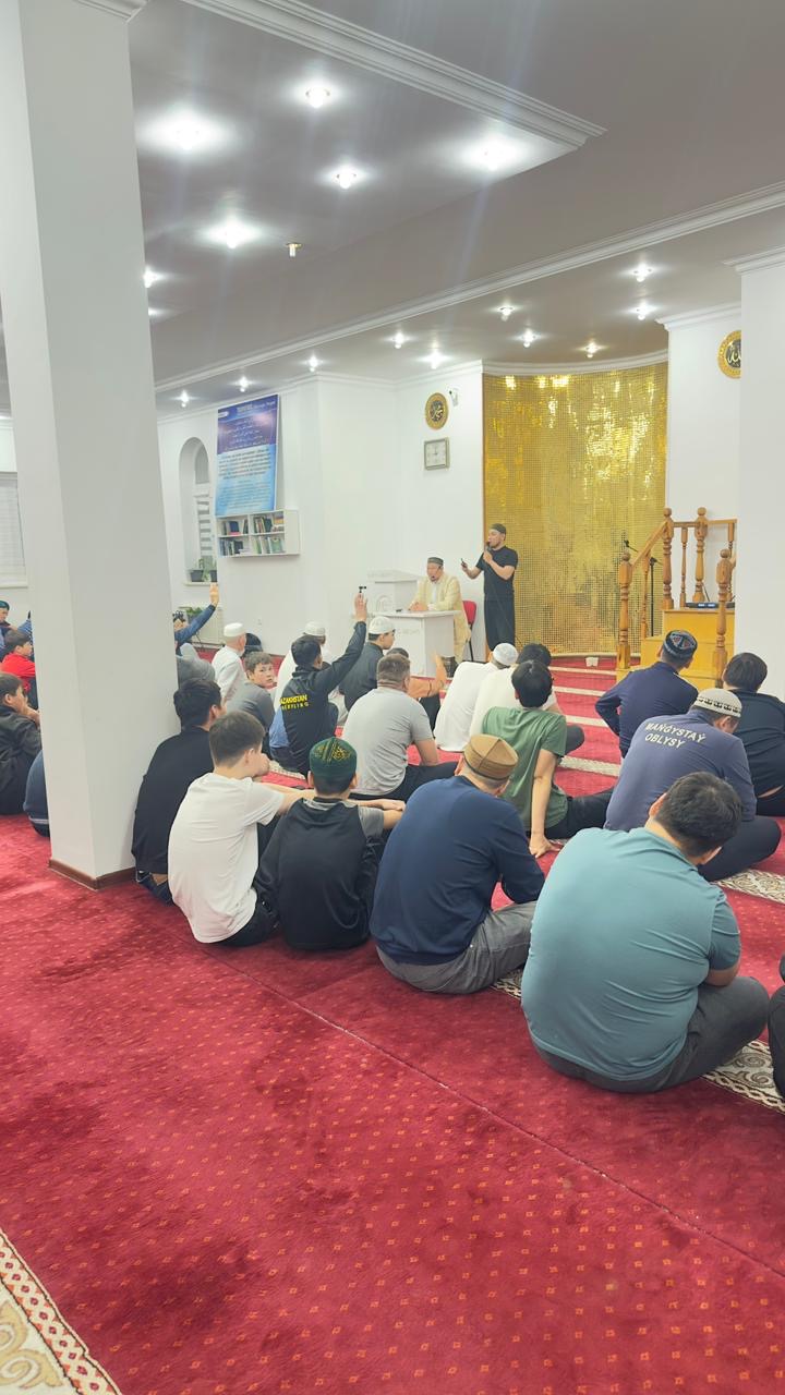 Қасиетті Рамазан айының құрметіне орай Қарақия аудандық орталық мешітінде күн сайын құптан намазы алдында жамағат арасында білім сайысы ұйымдастырылып келеді.