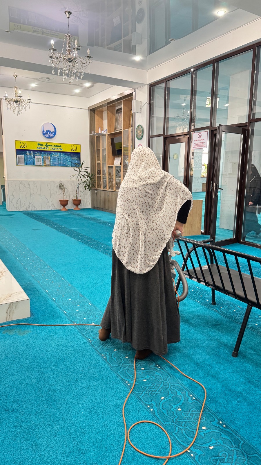 Мешіт кілемдері арнайы химиялық тазалаудан өтіп, терезелер мен шкафтар, барлық жиһаздар мұқият тазарылды.
