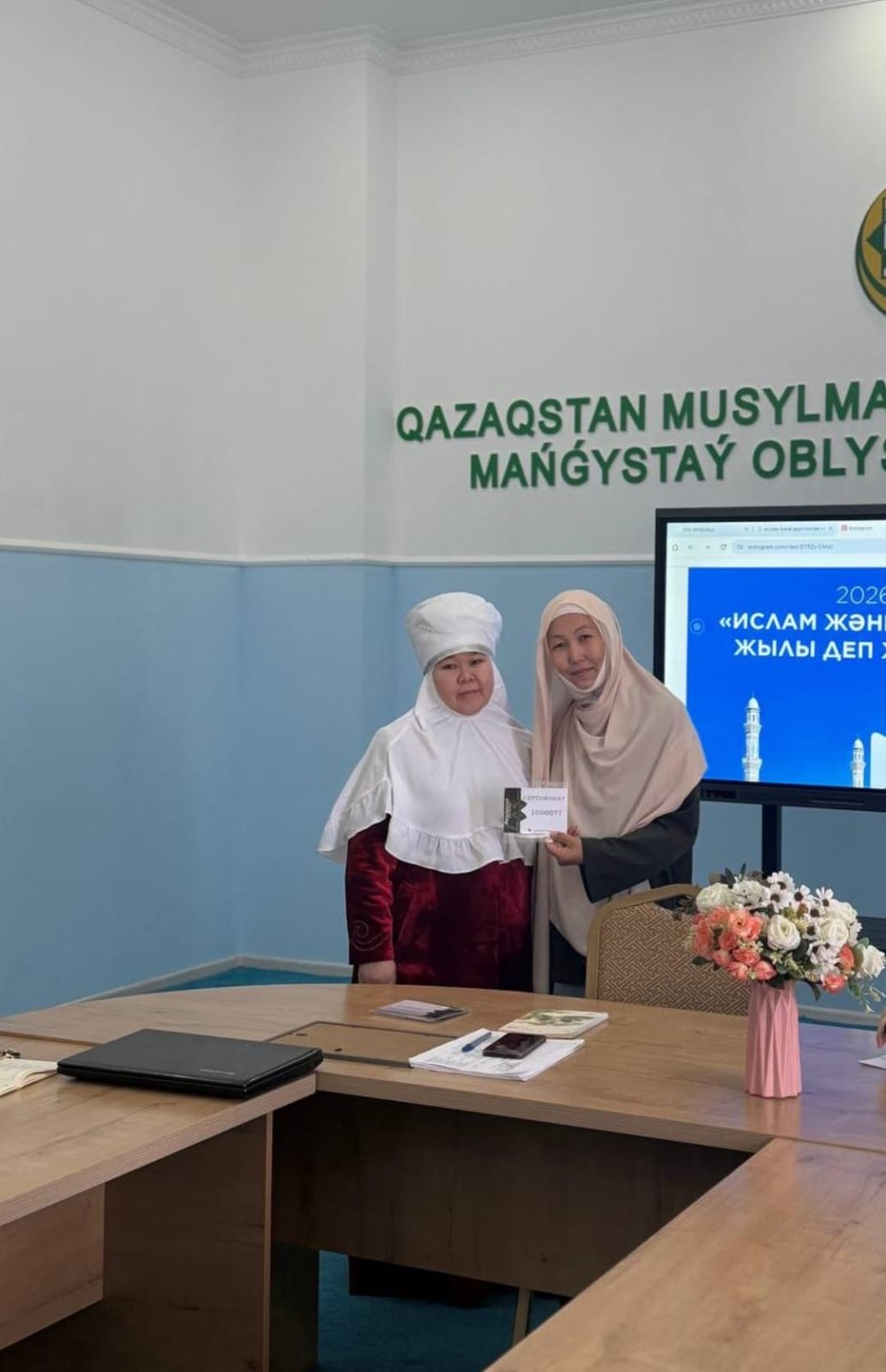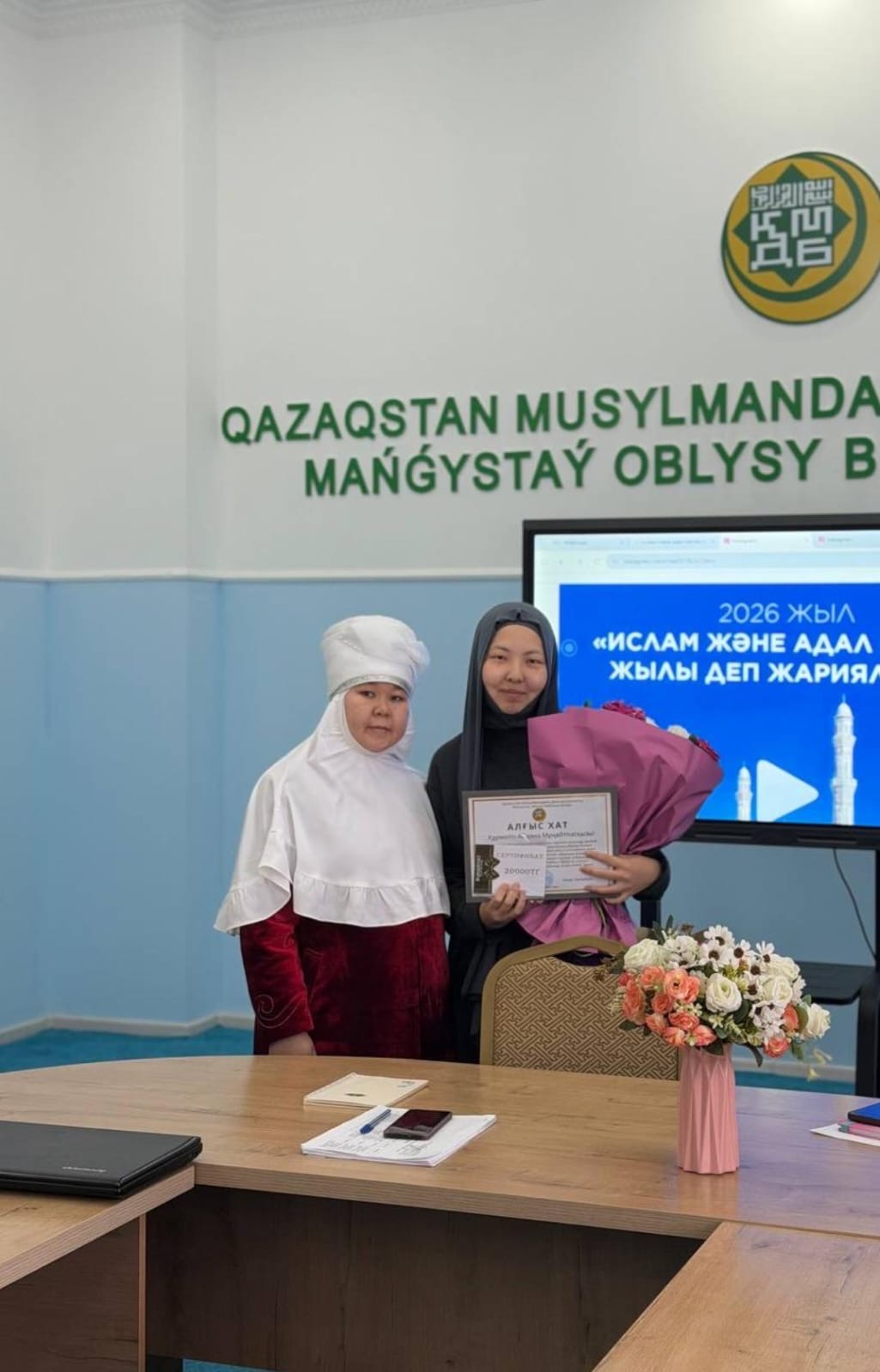 Жаңаөзен қалалық орталық Әбіш қожа мешітінің ұстазы Айдана Мұңайтпасқызы Маңғыстау облысының бас имамы Әнуар Ізімбайұлының атынан Алғыс хатпен марапатталды.