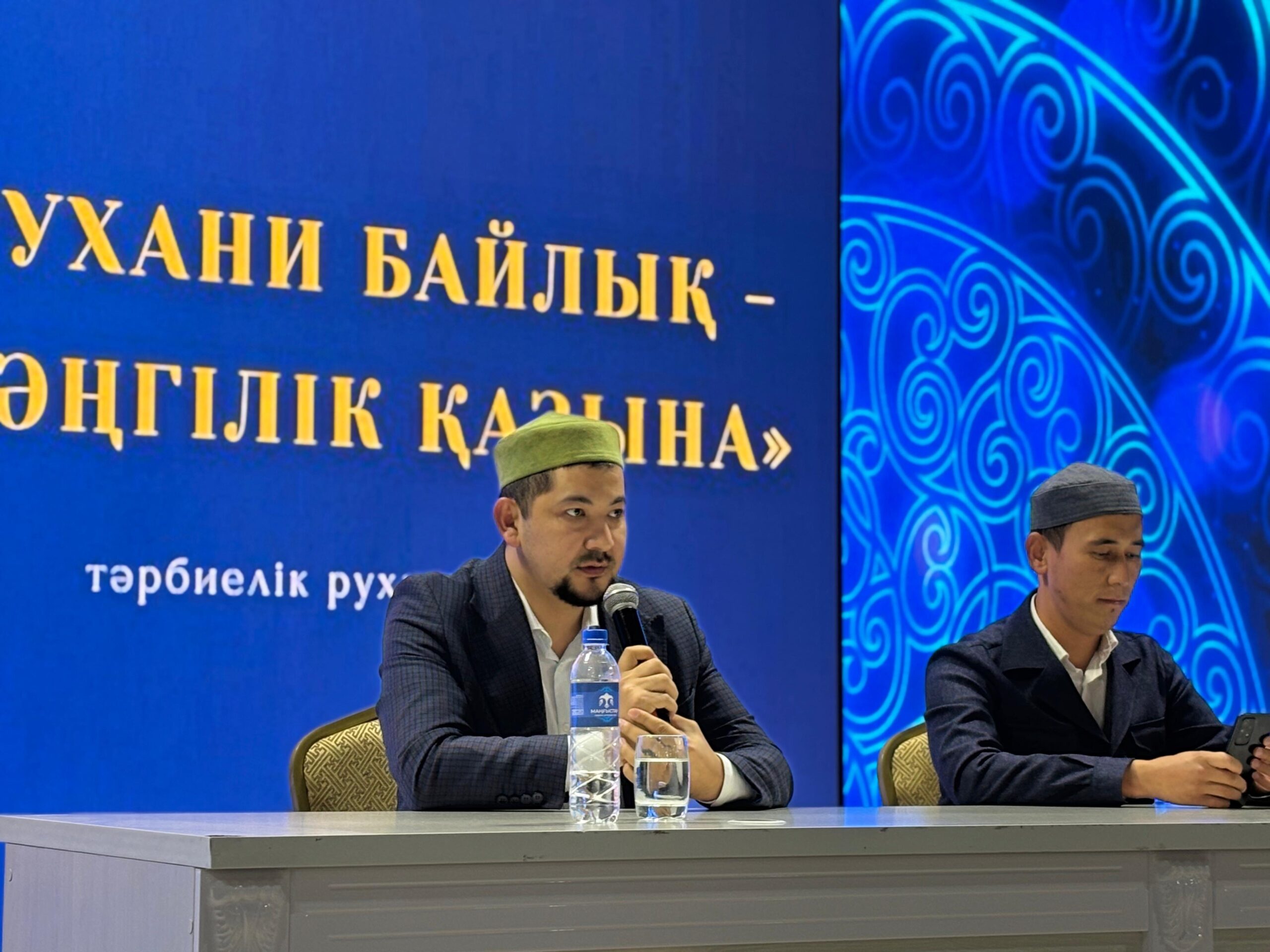 «Рухани байлық – мәңгілік қазына» тақырыбында өткен рухани жиында ұстаз жастарды білімге, адамгершілікке, имандылыққа үндеп, ұлттық және діни құндылықтарды қадірлеудің маңызына тоқталды. Кездесуге қатысқан студенттер көкейлеріндегі сұрақтарын қойып, тағылымды кеңес алды.