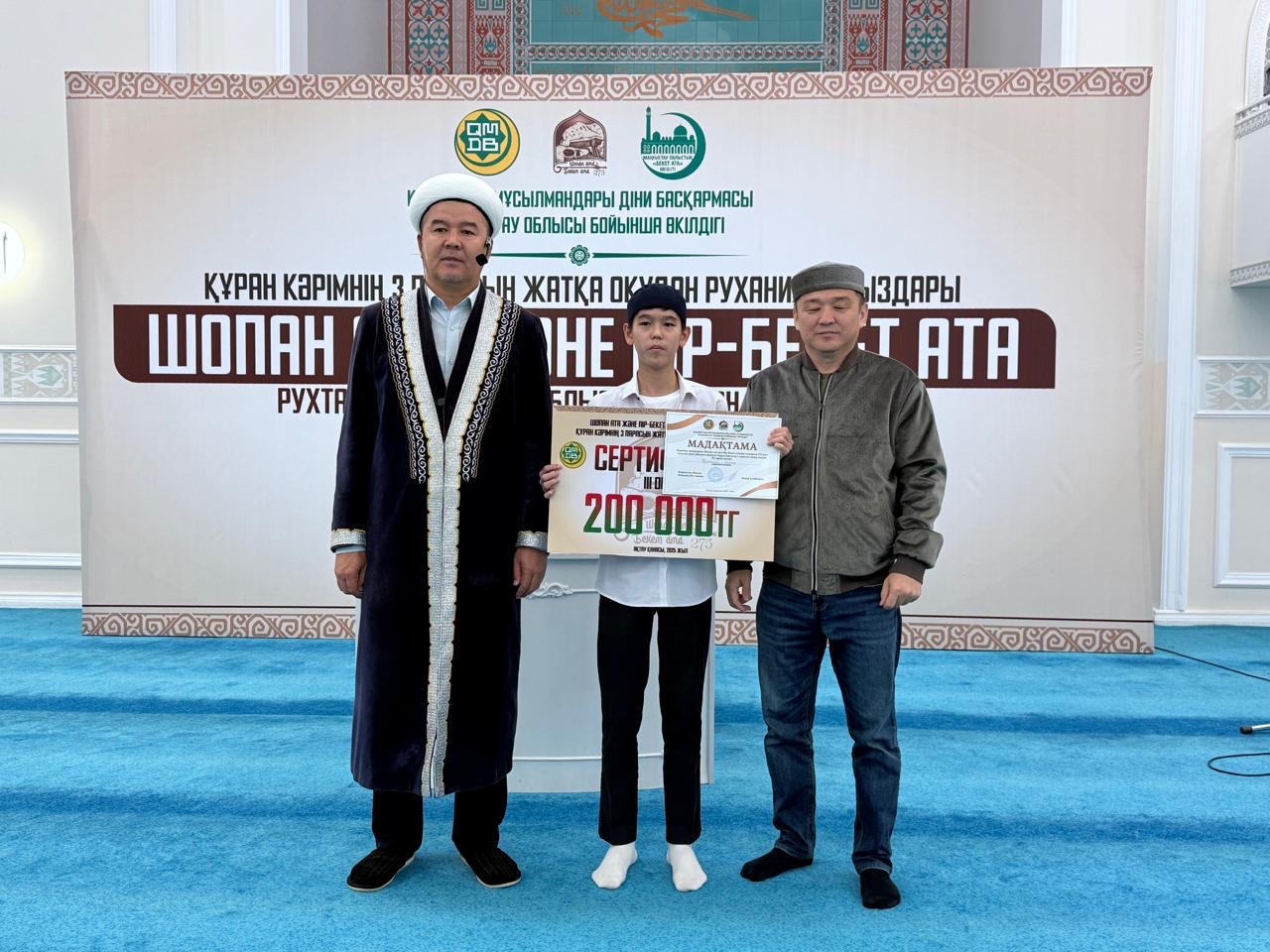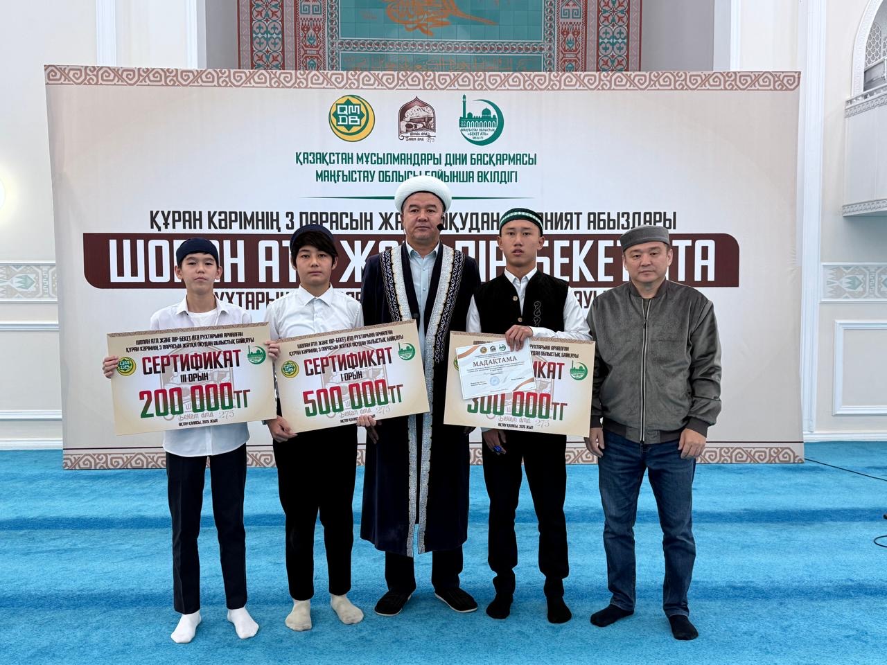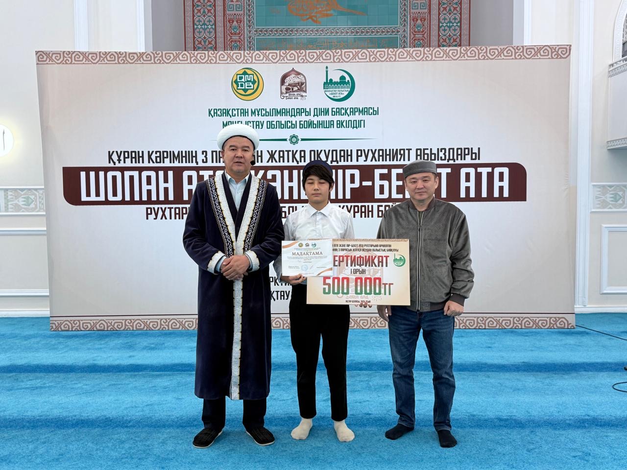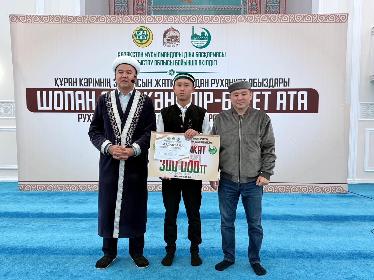 ҚМДБ Маңғыстау облыстық өкілдігінің ұйымдастыруымен Шопан ата және Пір-Бекет атаның туғанына 275 жыл толуына орай,қасиетті Құран Кәрімнің үш парасын жатқа оқудан ұл балалар арасында облыстық байқау өтті.