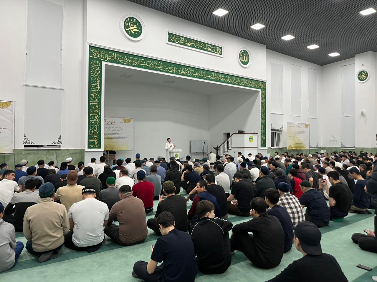 Кездесу барысында мешіттің бас имамы Құрбанбек Лашкербекұлы қасиетті Рамазан айының артықшылықтары, оразаның сауабы мен мұсылманның бұл айда жасайтын ізгі амалдары туралы насихат айтты. Сонымен қатар жамағат тарапынан қойылған сұрақтарға жауап беріп, Рамазан айына қатысты шариғи мәселелерді түсіндірді.