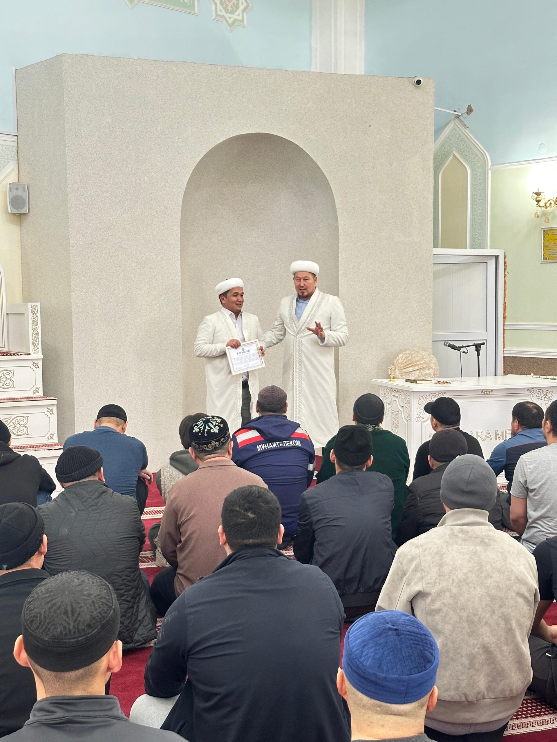 Қарақия аудандық орталық мешітінің бас имамы Серік Орынханұлы Бас мүфти бұйрығын оқып,жаңа қызметке тағайындалған имамдарды таныстырып,еңбектеріне береке тіледі.