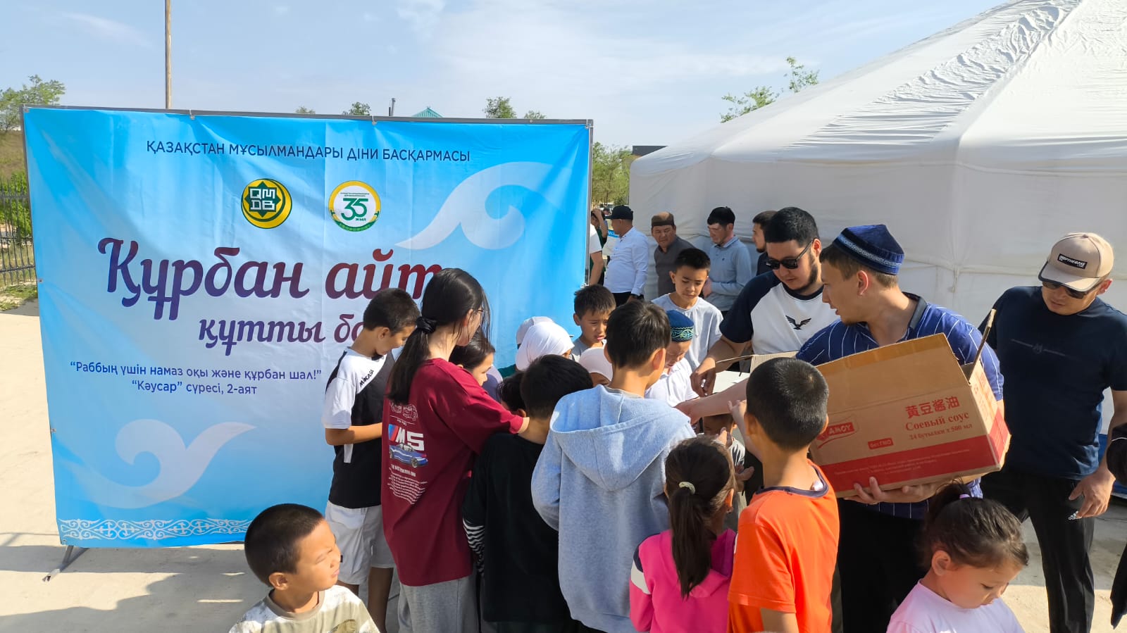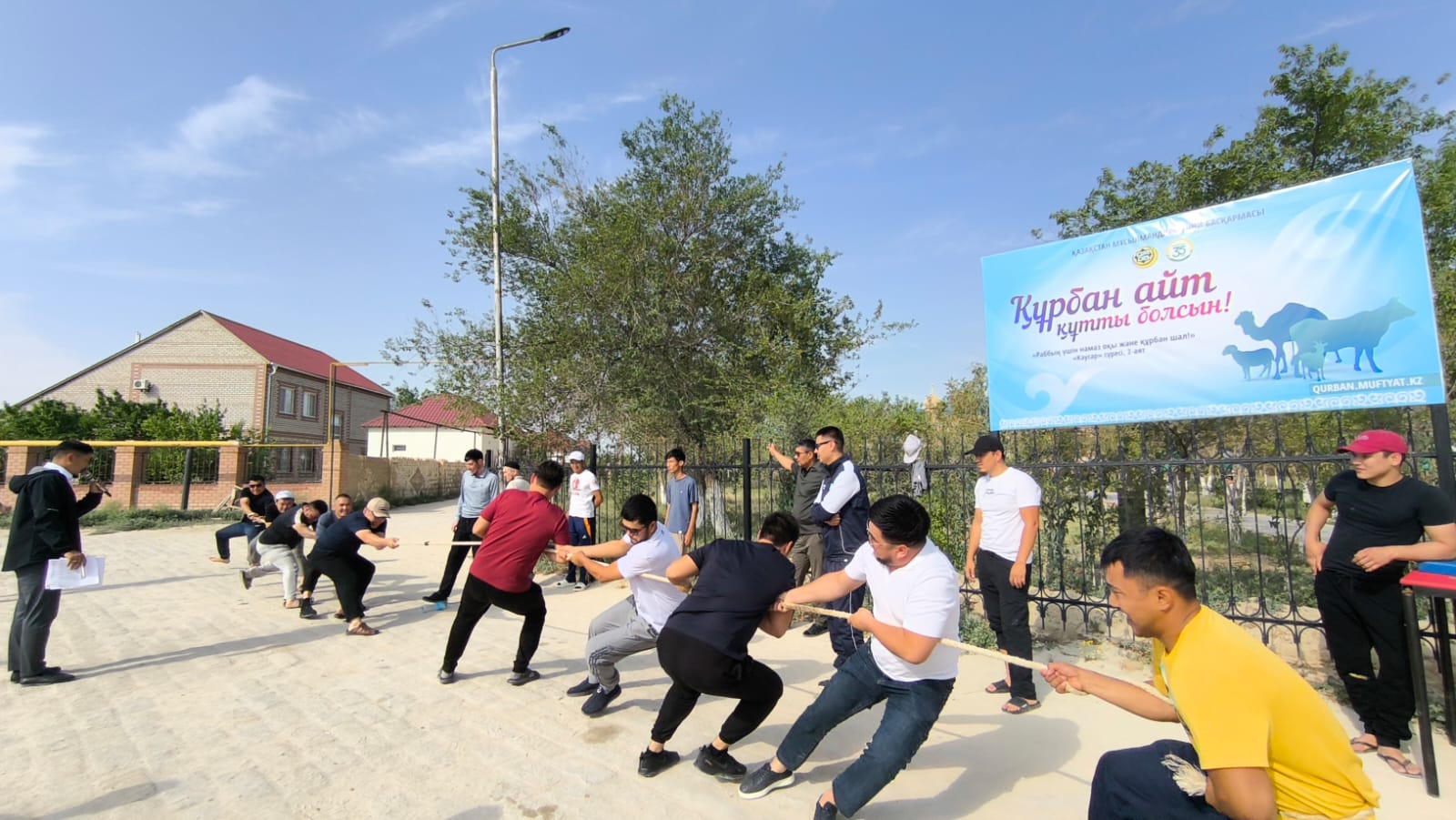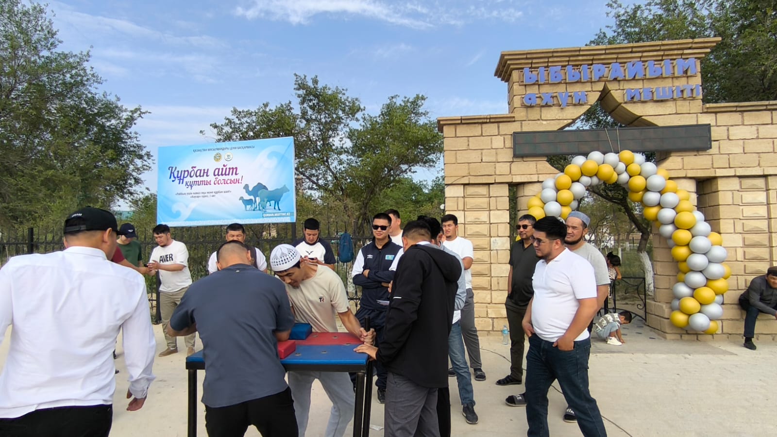 Аудан бас имамы Адайбек Мақанұлының бастамасымен жүзеге асқан шара барысында мешіт ауласына қазақы үй тігіліп,ақ дастархан жайылып, жамағат арасында қазақша күрес, гір көтеру, арқан тартыс және өзге де ұлттық ойын түрлерінен сайыстар өтті.Жеңімпаздарға мешіт атынан арнайы сыйлықтар табысталды.Бұдан бөлек, бүлдіршіндерге көңіл күй сыйлау мақсатында балаларға Құрбан айт тәттілері таратылды.